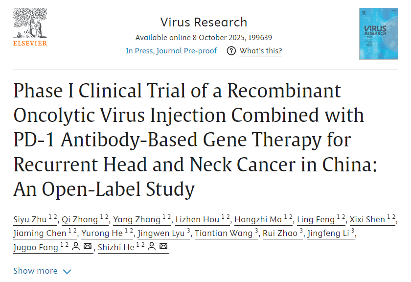 2025年10月8日,首都医科大学附属医院研究人员在《Elsevier》发布了VT1093联合PD-1抗体治疗复发性头颈癌的I期临床试验结果。