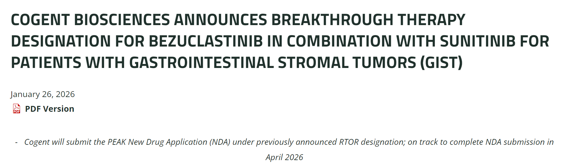 1月29日,国家药品监督管理局药品审评中心(CDE)显示:恒瑞医药申请的HRS-4642注射液拟纳入突破性治疗,用于联合吉西他滨和紫杉醇(白蛋白结合型)用于携带KRAS G12D突变的晚期或转移性胰腺癌的一线治疗。